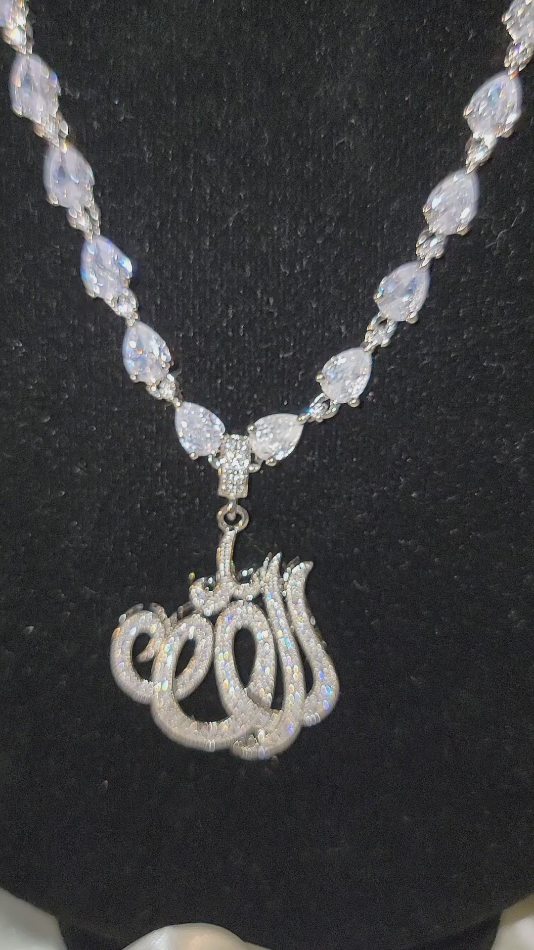 An emblem of faith and surrender - this radiant necklace reflects the beauty of trusting Allah's plan, adorned with shimmering stones and divine name at its heart.